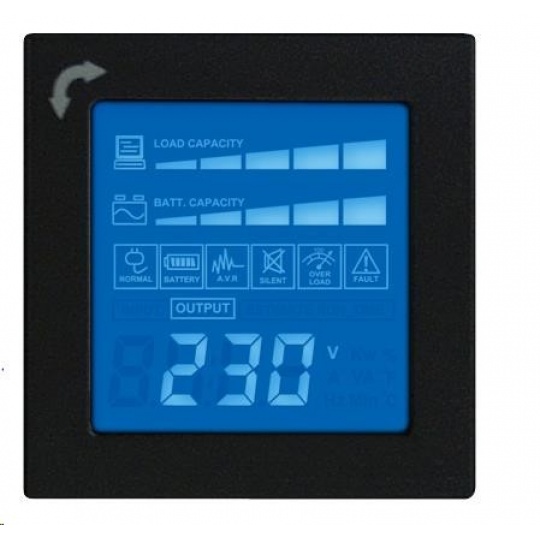 | Multi-funkční LCD zobrazení | Ano - Typ provozu , Stav napájení , Stav baterie , Stav zátěže , Porucha a varování , Další informace , Události a záznamy |