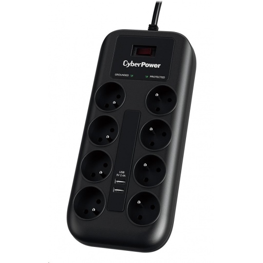 CyberPower Surge Buster™ 8 zásuvek, 2xUSB, 1.8m, New
