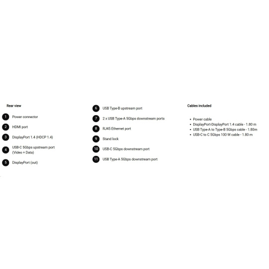 • 1 USB-C 5Gbps upstream port/s (DisplayPort 1.4 Alt Mode, Power Delivery up to 90 W)
