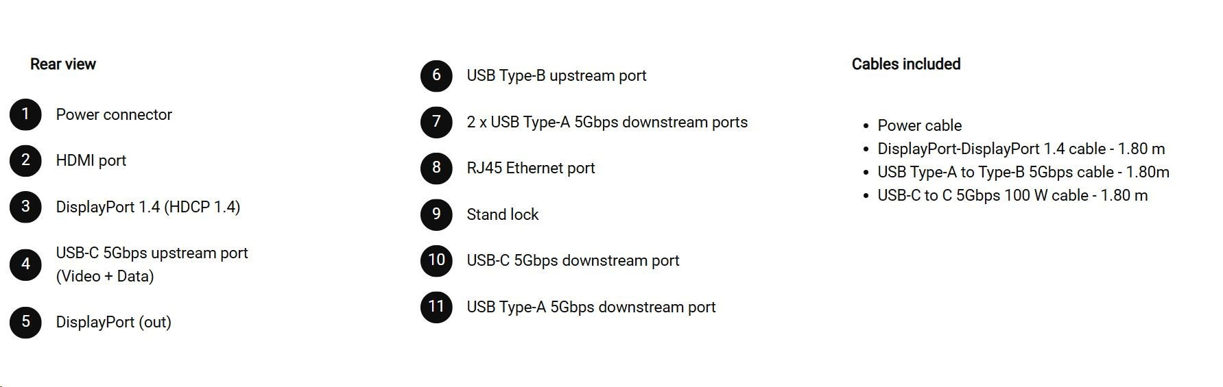 • 1 USB-C 5Gbps upstream port/s (DisplayPort 1.4 Alt Mode, Power Delivery up to 90 W)