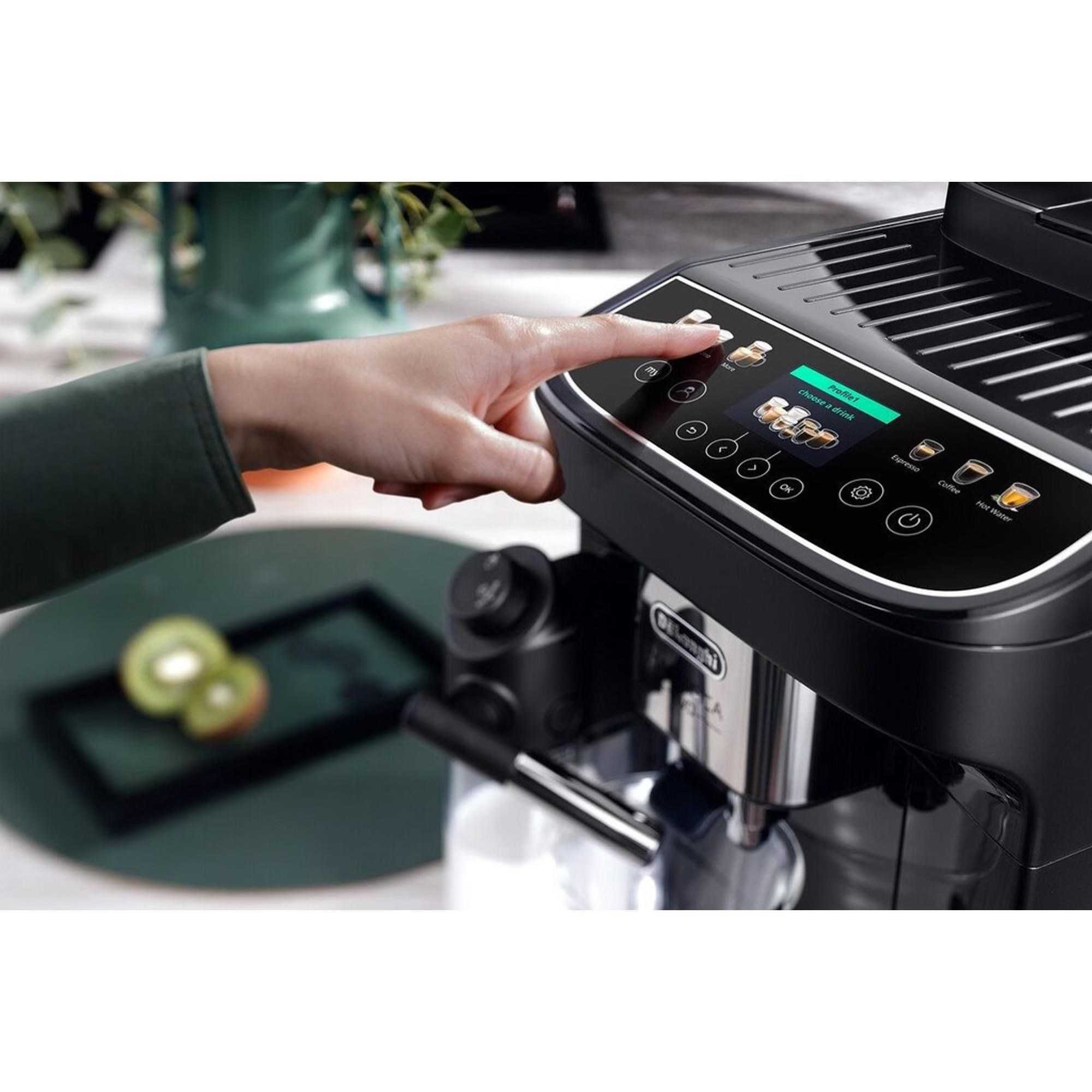 Díky velkému barevnému displeji s uhlopříčkou 2,4” je používání kávovaru snadné a intuitivní. Barevné dotykové ikony nápojů na ovládacím panelu vám usnadní výběr vaší oblíbené kávy, zatímco podsvícená navigační tlačítka vám umožní snadno prozkoumat všechny nápoje a upravit si je podle svých představ.
