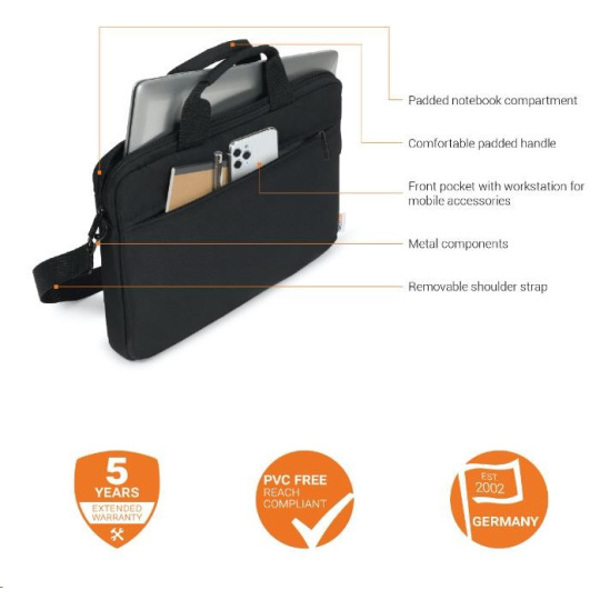 Product Description Your notebook will arrive at its destination safely with the BASE XX slim case. The main compartment is furnished with particularly thick padding, which means your device is completely protected from bumps and shocks. Documents and mobile accessories such as your smartphone, business cards, pens and so on are always within easy reach in the zip pocket on the front. The length-adjustable and removable shoulder strap and handle make the bag very easy to carry. BASE XX emphasises the durability of the product with an extended five year guarantee. Padded notebook compartment Front pocket with workstation for mobile accessories All around padding for extra protection High quality metal components Comfortable carrying handle and removable shoulder strap Picture may differ slightly from the original Additional Information Product Dimensions 360 x 260 x 35 mm EAN 7640186417259 Material 300Dx300D Polyester Colour camel brown.