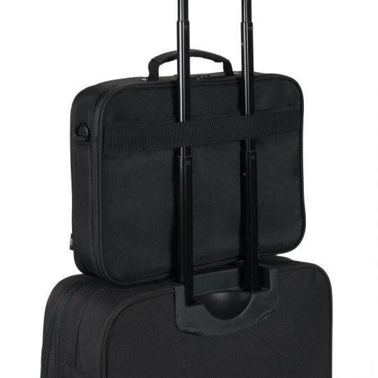 Důležité dokumenty lze bezpečně uložit do kapsy na doklady na zadní straně, zatímco polstrovaný ramenní popruh umožňuje pohodlné nošení. Díky popruhu na kolečkách lze brašnu snadno připevnit ke kufru. Brašnu doplňuje vodoodpudivý materiál, který spolehlivě ochrání obsah před povětrnostními vlivy.