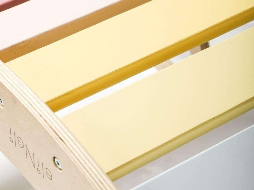 Vylepšená multifunkční dřevěná houpačka 5v1, s deskami ve svěžích fresh barvách, je zábavnou hračkou pro děti, kterou využijí při pohybových aktivitách i při hře. Montessori houpačka umožní dětem příjemně se pohoupat, skvěle poslouží jako prolézačka, skluzavka, skrýš, most, stolička nebo prodejní pultík při hře na obchod. Houpačka přirozeným způsobem rozvíjí motorické dovednosti a je vhodná pro děti již od 1 roku..