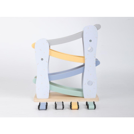 Dřevěná závodní dráha (autodráha) v krásných pastelových barvách, se 4 barevnými autíčky, probudí duši závodníka v každém dítku a nejspíš i v rodičích. Uspořádání závodů se závodními auty přímo v dětském pokoji je zábavnou hrou pro celou rodinu. Rozhodující při této hře je správná koordinace, přesnost, chvíle soustředění, zkrátka správně umístit závodničku na vrchol závodní dráhy..