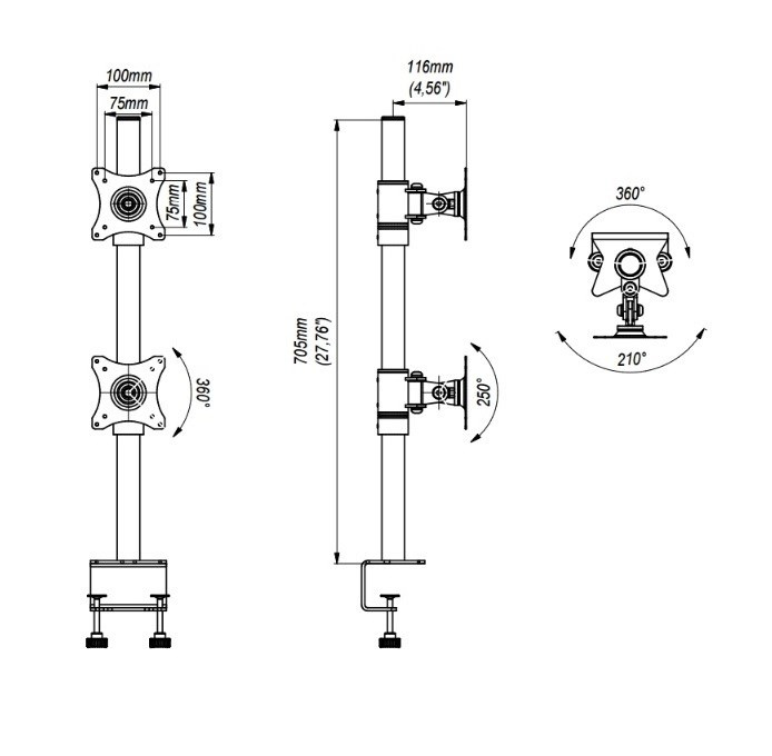 Profesionální stolní držák na 2 monitory EDBAK SV08 Profesionální stolní držák pro zavěšení 2 monitorů 15-30" vertikálně, otočný, sklopný, výškově nastavitelný, barva černá, VESA 75x75 a 100x100, nosnost 20kg Profesionální stolní držák pro nezávislé zavěšení monitorů nebo menších televizorů pod sebe. Držák umožňuje nezávislé nastavení každého monitoru - nastavení výšky, náklonu a natočení do stran. Dodáváme včetně 2 typů uchycení na stolovou desku (viz. obr. níže), barevné provedení černé. Držák je vyroben z kvalitní silnostěnné oceli a neobsahuje žádné plastové nosné prvky. Díky profesionální konstrukci a výborné kvalitě je vhodný do jakéhokoliv provozu, kanceláře nebo pracovny. Stolní držák do kanceláře pro zavěšení 2 monitorů pod sebe - EDBAK SV08 Technické údaje: celkové maximální zatížení 20kg maximální hmotnost každé obrazovky 10kg podpora VESA standardu 75x75 a 100x100 doporučujeme na monitory a obrazovky s úhlopříčkami 15" až 30" nezávislé výškové nastavení každé obrazovky nezávislé natočení do stran každé obrazovky nezávislé nastavení sklonu každé obrazovky robustní ocelová konstrukce bez nosných plastových částí funkce pivot - možnost přetočení obrazovky na výšku vhodný do jakéhokoliv provozu dodáváme včetně 2 typů stolového uchycení (viz. obr. níže) certifikát TUV GS barva černá záruka 10 let Stolní držák na 2 monitory nebo Tv Edbak SV08 Držáky na 2 monitory Edbak SV08 podporují VESA standardy: VESA 75x75 VESA 100x100.
