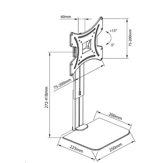 Držák Tv monitoru s poličkou Fiber Mounts FM46 Nástěnný držák na televize a monitory 15" - 43" s poličkou na příslušenství 250 x 200mm a nosností 5kg, nastavitelná vzdálenost poličky od držáku 272 - 418mm, naklápění obrazovky +15° / -5°, vzdálenost obrazovky od zdi 60mm, VESA 75x75 až 200x200, nosnost držáku 20kg Nástěnný držák na Tv monitor včetně poličky na příslušenství Fiber Mounts FM46 Technické údaje: nosnost držáku 20kg nosnost poličky 5kg držák podporuje VESA standardy 75x75 až 200x200 možnost naklápění obrazovky +15° / -5° vzdálenost od zdi 60mm skleněná polička 250 x 200mm nastavitelná vzdálenost poličky od držáku 272 - 418mm kovová konstrukce, polička z tvrzeného bezpečnostního skla instalační materiál barevné provedení černé záruka 2 roky Držák na televizi nebo monitor 15" až 43" včetně poličky na příslušenství 250 x 200mm Fiber Mounts FM46 Držák Tv / monitoru FM46 podporuje VESA standardy: VESA 75x75 VESA 100x100 VESA 200x100 VESA 200x200.