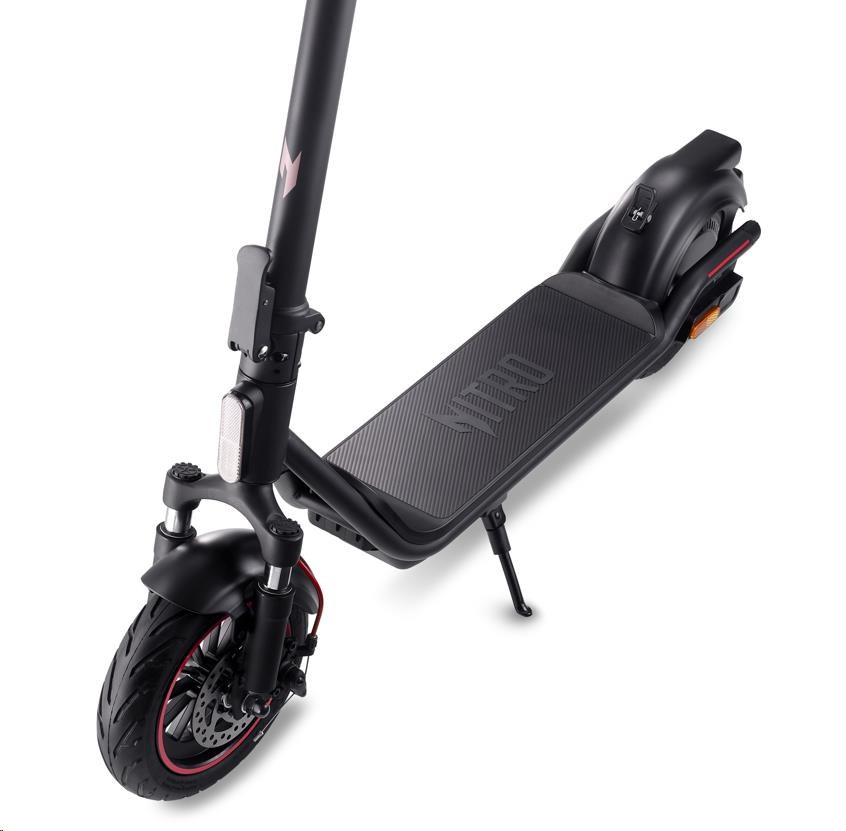 Pohybujte se po městě stylově s elegantní skládací koloběžkou eScooter Acer Nitro ES Series 4 Select, která byla navržena s několika možnostmi rychlosti, citlivými brzdami, odpružením tlumícím nárazy a jasným, snadno čitelným displejem.
