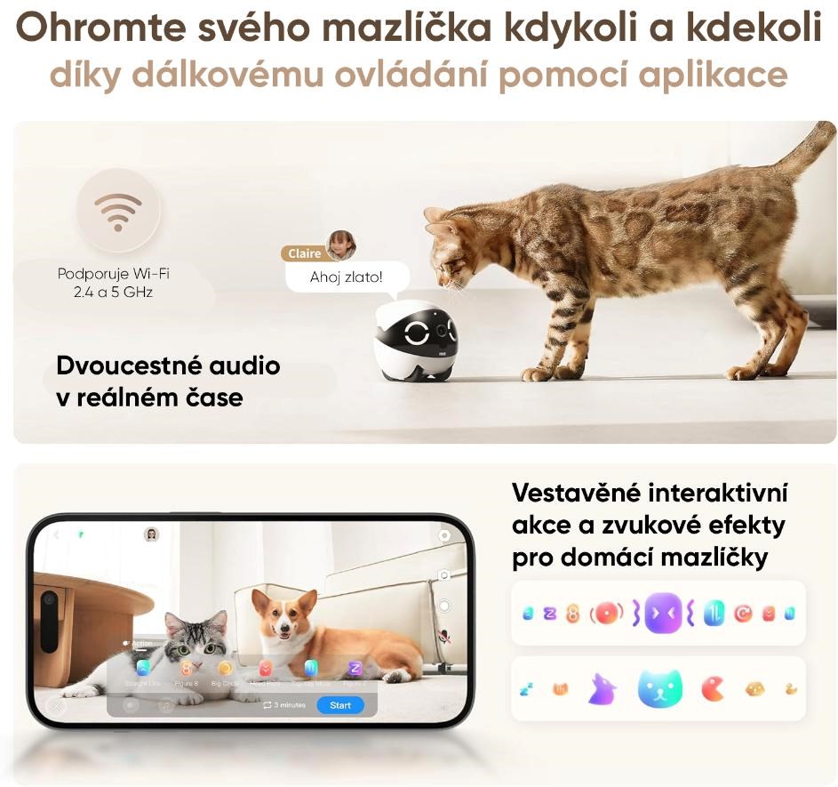 • Všestranné využití – skvělý pro zábavu domácích mazlíčků, komunikaci s dětmi i jako mobilní domácí kamera.