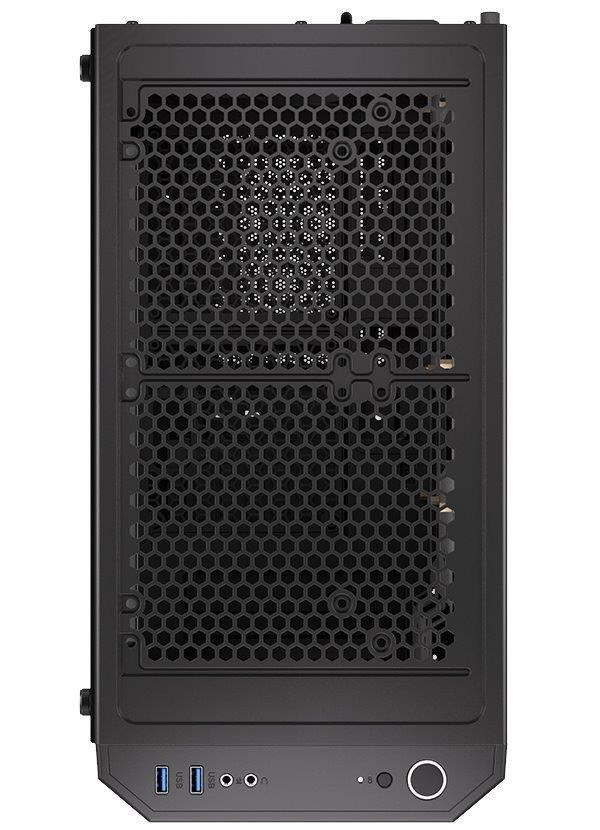 Skříň formátu Middle Tower s průhlednou bočnicí z tvrzeného skla nabízí dvě 2,5" pozice pro SSD disky a dvě 3,5" pozice pro pevné disky. Na horní části se nachází dva USB 3.0 porty, sluchátkový výstup a audio vstup pro mikrofon. Vybavena je dvěma 120 mm ventilátory, které spolu s perforovaným čelním panelem zajišťují dostatečné proudění vzduchu. Důmyslné řešení umožňuje pohodlné umístění až 360 mm dlouhého výměníku vodního chlazení na přední straně. Ve skříni je dostatek prostoru pro chladič CPU do výšky až 161 mm a grafickou kartu o délce až 350 mm. Dodávána je bez zdroje. Součástí je také sada prachových filtrů.
