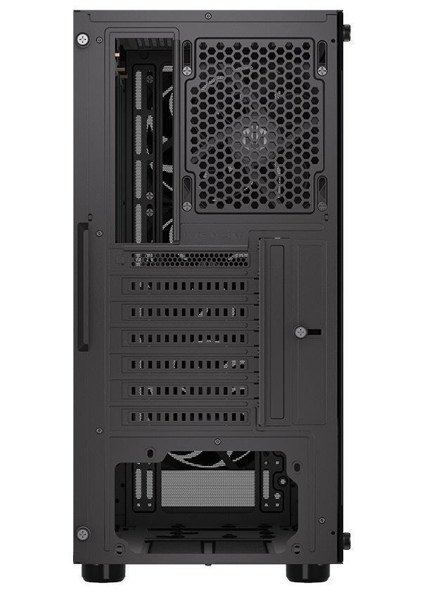 Skříň formátu Middle Tower s průhlednou bočnicí z tvrzeného skla nabízí dvě 2,5" pozice pro SSD disky a jednu 3,5" pozici pro pevný disk. Na horní části se nachází dva USB 3.0 porty, sluchátkový výstup a audio vstup pro mikrofon. Vybavena je čtyřmi 120 mm ventilátory, které spolu s perforovaným čelním panelem zajišťují dostatečné proudění vzduchu. Důmyslné řešení umožňuje pohodlné umístění až 360 mm dlouhého výměníku vodního chlazení na přední straně. Ve skříni je dostatek prostoru pro chladič CPU do výšky až 161 mm a grafickou kartu o délce až 315 mm. Dodávána je bez zdroje. Součástí je také sada prachových filtrů.