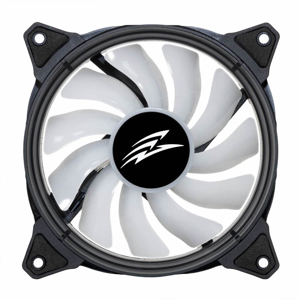 RGB LED ventilátor typu rainbow s LED diodami umístěnými ve vnějším obvodu, jedná se o tzv. typ ring. Ventilátor umožňuje najednou zobrazit všech sedm barev duhového spektra. Jedná se o kontrolní ventilátor, který je určen pro použití s ventilátorem EVOLVEO 12RS. LED osvětlení je ovládáno pomocí tlačítka reset nebo LED tlačítka na ovládacím panelu skříně nebo připojením přiloženého ARGB kabelu k základní desce.