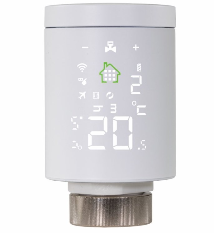 Chytrá bezdrátová termostatická hlavice na radiátor, set obsahuje dva kusy + centrální Wi-Fi jednotku, ovládání přes aplikaci Android/iOS v češtině, white paper LED display s dotykovým ovládáním, kompatibilní s Google Assistant a Amazon Alexa, denní a týdenní plánování, připojení na závit M30 a kompatibilní s ventily RA, RAV, RAVL