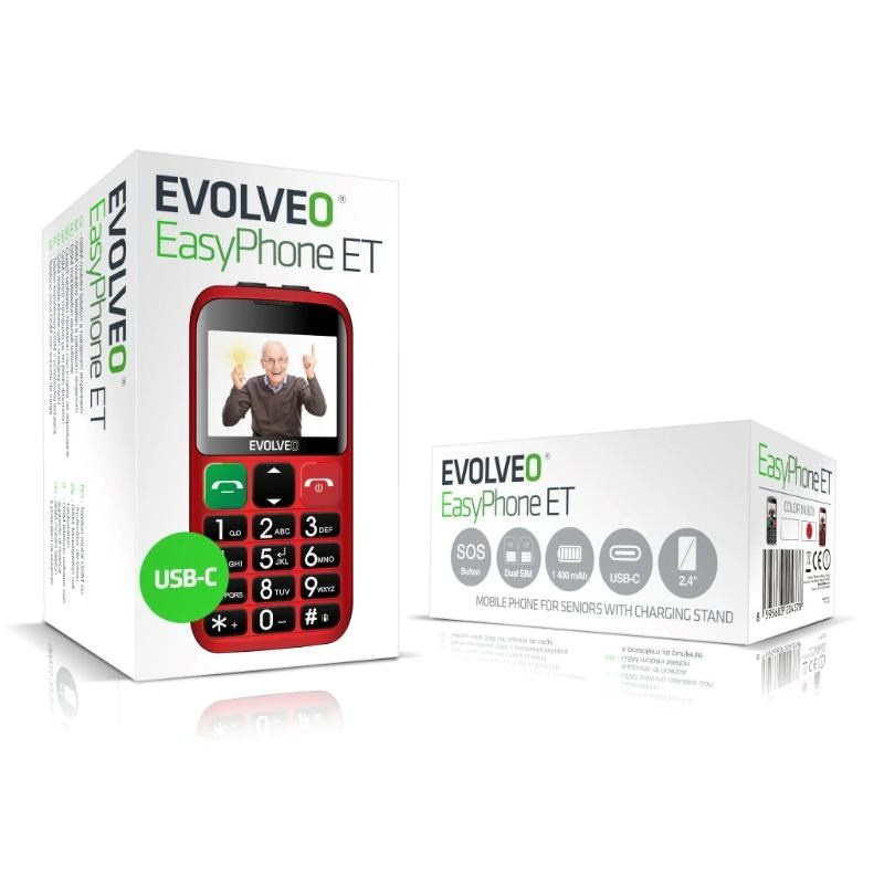 EVOLVEO EasyPhone ET, mobilní telefon pro seniory s nabíjecím stojánkem