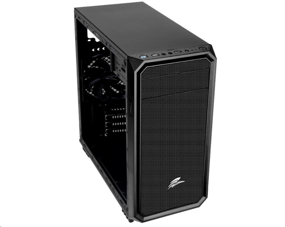 EVOLVEO Shaw 2, case mATX, 1x 120 mm ventilátor, přední mesh panel, prachový filtr, bez zdroje, černá.