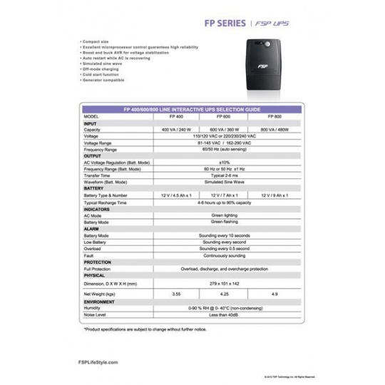 Fortron UPS FSP FP 800, 800 VA, line interactive