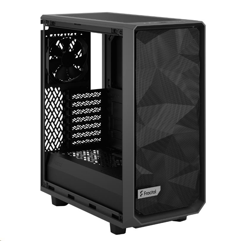 Meshify 2 Compact is a high-performing case with a bold, stealth-inspired aesthetic. Its striking exterior features bolt-free, flush tempered glass, a fully removable top panel granting excellent interior access, and a front USB 3.1 Type-C port.