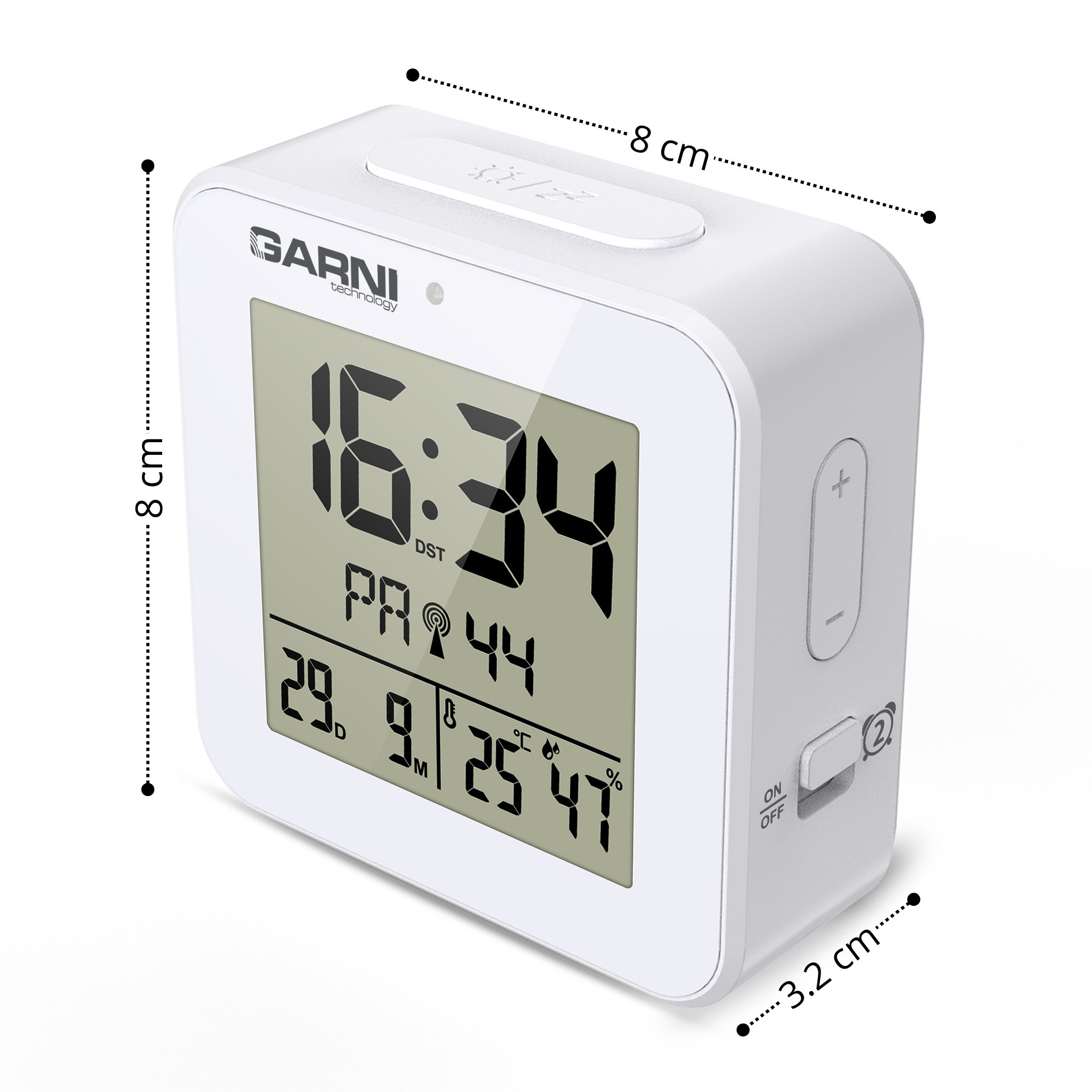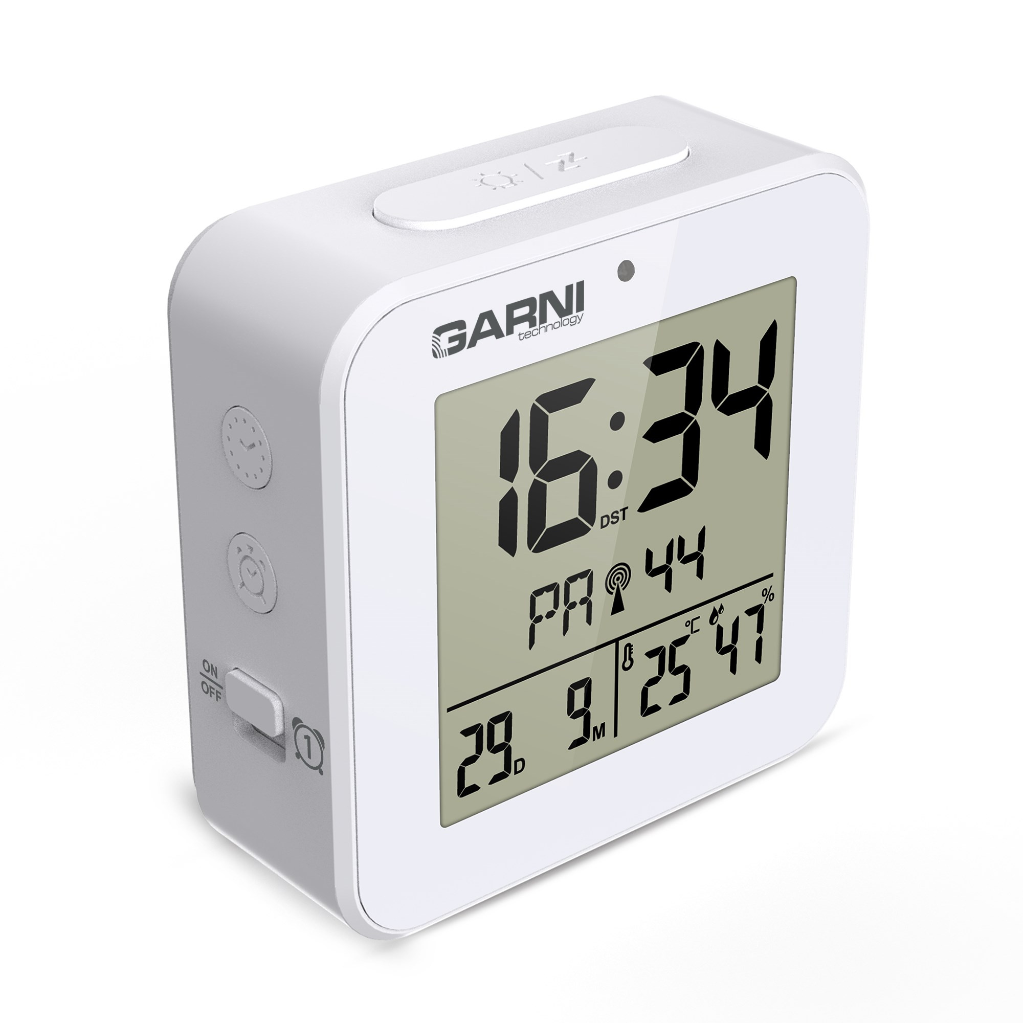 GARNI 138W - digitální budík s teploměrem a vlhkoměrem, bílá