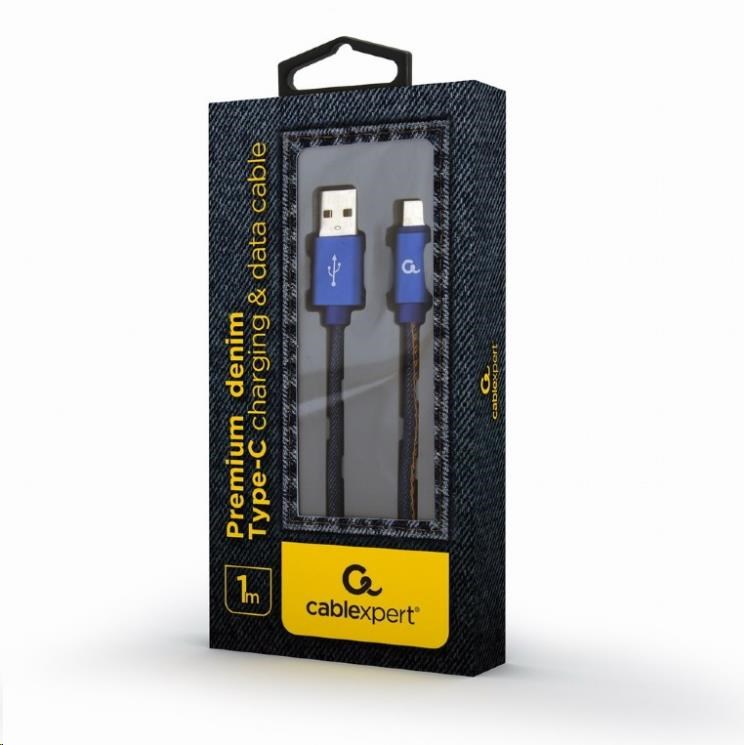 GEMBIRD Kabel USB 2.0 AM na Type-C kabel (AM/CM), 1m, opletený, jeans, blister, PREMIUM QUALITY