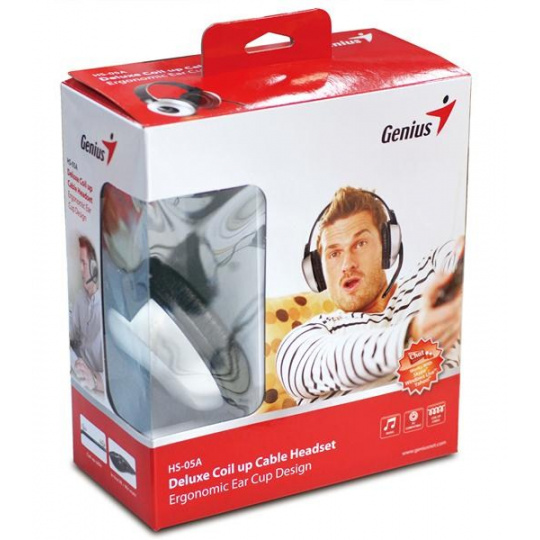 Užijte si jasný zvuk se sluchátky HS-05A od firmy Genius. Tato luxusní sluchátka s klapkami plné velikosti předchází nepohodlí uší po dlouhém používání, upravitelná spojovací čelenka a kožené klapky jsou flexibilní k lepšímu padnutí kolem vaší hlavy. Gumový mikrofon je možno ohnout do ideální polohy k přenosu lepší kvalitu hlasu, navíjecí kabel předchází zamotávání drátů. Hlasitost se snadno změní s použitím ovládání hlasitosti na drátě sluchátek.