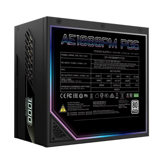 GIGABYTE zdroj AE1000PM PG5, 1000W, 80+ Platinum, 120mm fan, černá