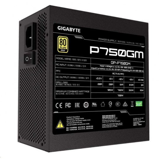GIGABYTE zdroj P750GM, 750W, 80plus gold, modular, 120 mm fan