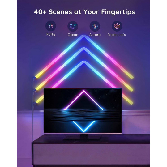 Govee Glide nabízí více než 40 různých režimů pro dokonalé naladění světelné atmosféry. Govee technologie RGBIC umí zobrazit až 57 barev najednou z celkové škály 16 milionů barev při intenzitě 1-100%. Může se také pochlubit životností až 50.000 hodin.