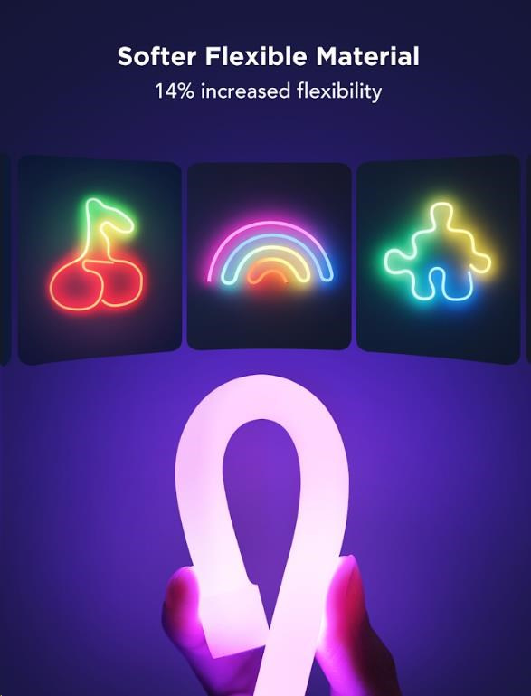 Instalace je velice jednoduchá pomocí samolepících klipů s 3M páskami. Nová generace neonových pásku je ještě ohebnější a tvarování je tak snazší. Vylepšeny byly i klipy a nabízí teď pevnější fixaci vymyšleného tvaru. Pro možnost maximální jistoty jsou v balení i šroubky. Govee Neon 2 je vhodné pro všechny místnosti a fantazii se meze nekladou!
