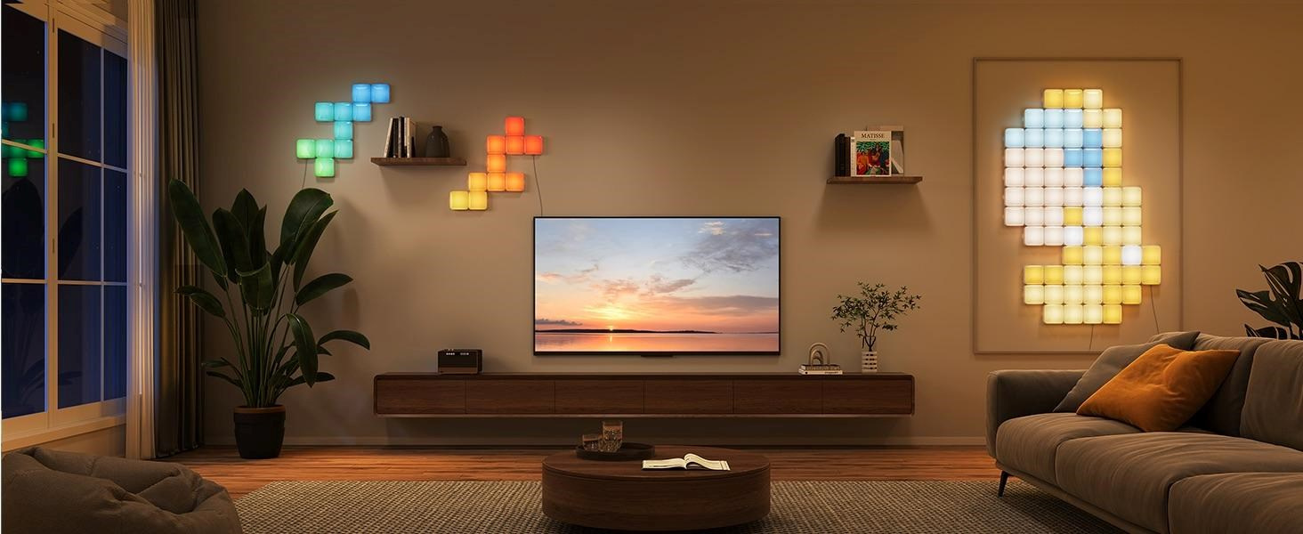 - Živé RGBIC efekty: Zobrazte více zářivých barev současně na každém panelu.