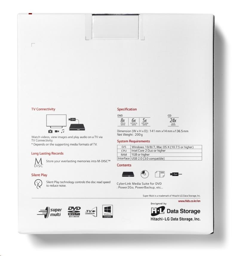 HITACHI LG - externí mechanika DVD-W/CD-RW/DVD±R/±RW/RAM GP57EB40, Slim, Black, box+SW
