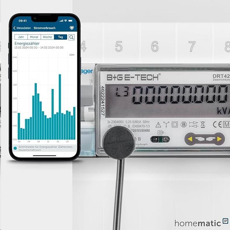 Rozhraní je vhodné pro průběhové nebo podružné elektroměry, které zaznamenávají příkon fotovoltaického systému nebo spotřebu energie z tepelného čerpadla. Údaje se vždy zobrazují v aplikaci Homematic IP. Instalace probíhá v několika málo krocích přímo na elektroměru. Informaci o tom, kolik impulsů na kWh váš elektroměr dodává, najdete přímo na elektroměru.