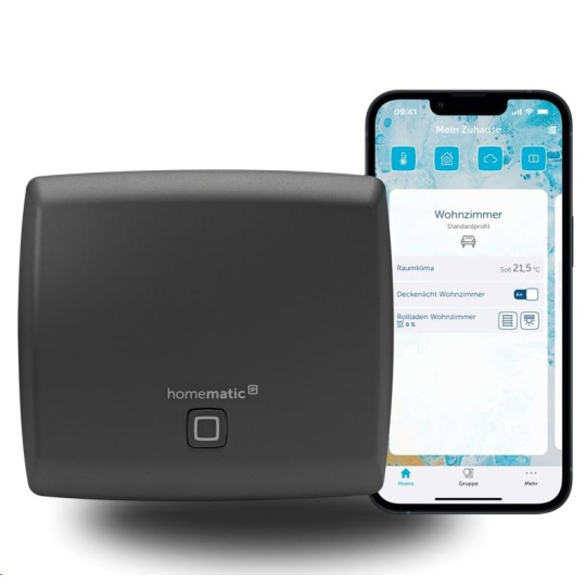 Pracuje jako přístupový bod a nabízí pohodlné nastavení a ovládání komplexního systému chytré domácnosti Homematic IP pomocí intuitivní aplikace (pro Android a iOS v CZ) určené pro chytré telefony a tablety. Mobilní aplikace umožňuje okamžitou reakci na zprávy a upozornění ze systému vaší chytré domácnosti a spojuje všechna zařízení Homematic IP prostřednictvím bezplatného neomezeného cloudu, ten umožňuje nastavení a řízení systému odkudkoliv na světě, přenos důležitých informací a aktualizaci softwaru a firmwaru zařízení, předává konfigurační a provozní příkazy z aplikace Homematic IP směrem k jednotlivým zařízením chytré domácnosti.