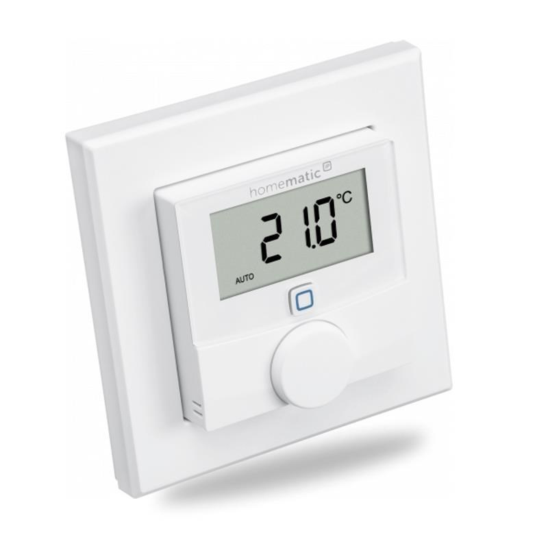 Programovatelný termostat se senzorem vlhkosti je součástí systému chytré domácnosti Homematic IP, umožňuje časově řízenou regulaci teploty a ovládání několika termostatických radiátorových hlavic (HmIP-eTRV) z řady Homematic IP v jedné místnosti. Zařízení může být provozováno nezávisle na systému, propojené napřímo s akčními členy (HmIP-FALMOT) podlahového vytápění Homematic IP.