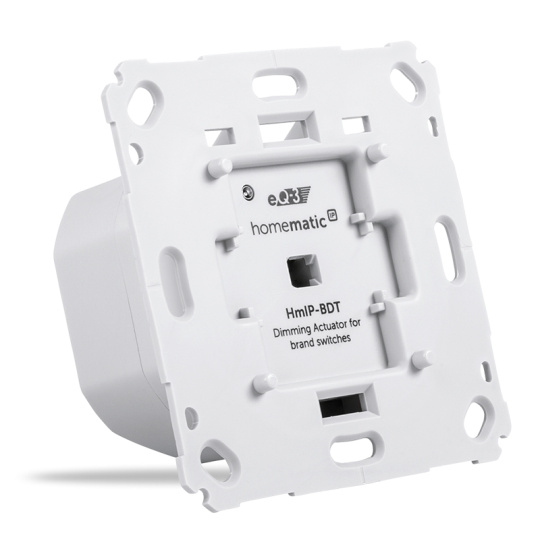 Stmívací akční člen HmIP-BDT se instaluje na místo klasického světelného vypínače do standardní zápustné krabice pod omítku s připojením do sítě 230 V. Lze jej aplikovat na jakákoliv místa s již připraveným připojením k elektrické síti 230 V a tak zajistit takřka bezúdržbový provoz bez potřeby použití a výměny baterií.