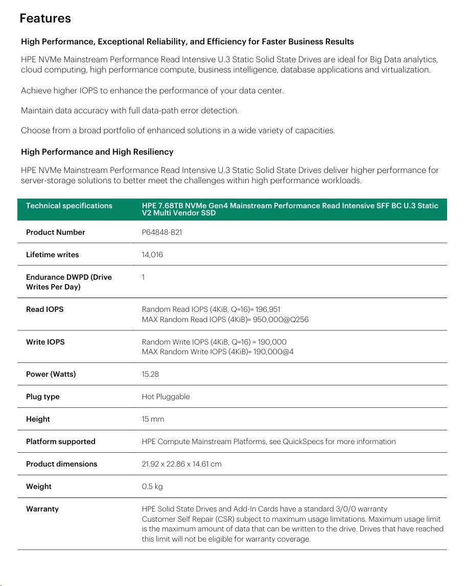 HPE 7.68TB NVMe Gen4 Mainstream Performance Read Intensive SFF BC U.3 Static V2 Multi Vendor SSD.