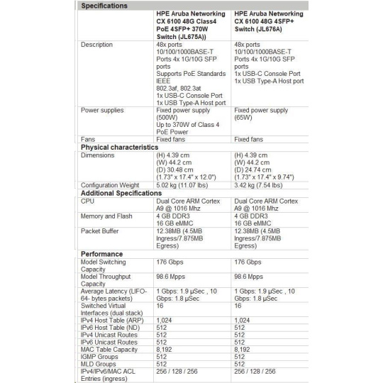 HPE Aruba Networking CX 6100 48G 4SFP+ Switch RENEW JL676AR#ABB.