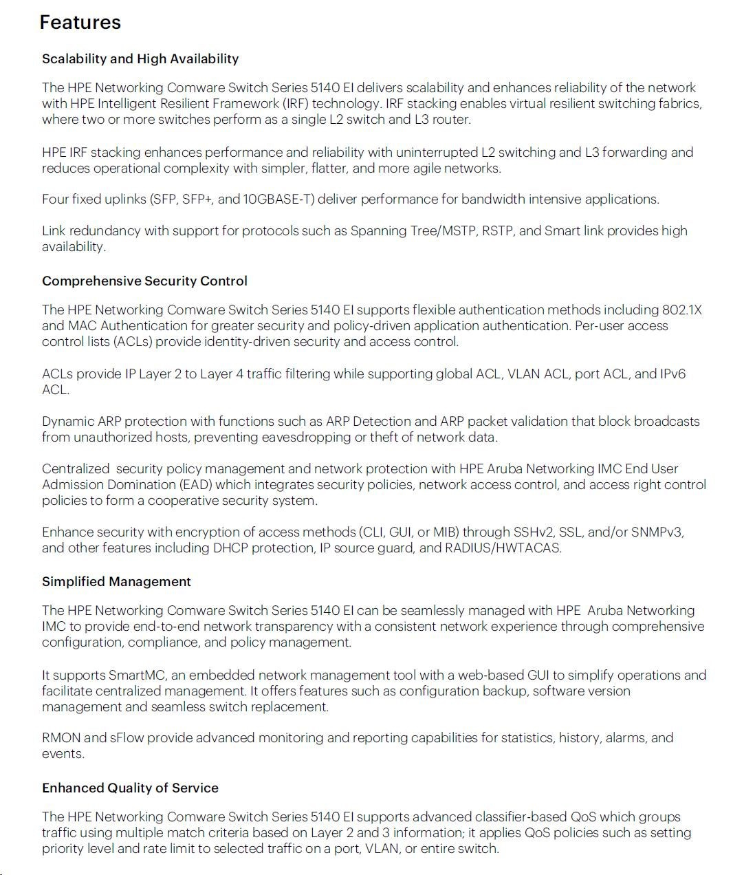 | Management | IMC - Intelligent Management Center; SmartMC; command-line interface; Web browser; SNMP Manager | |