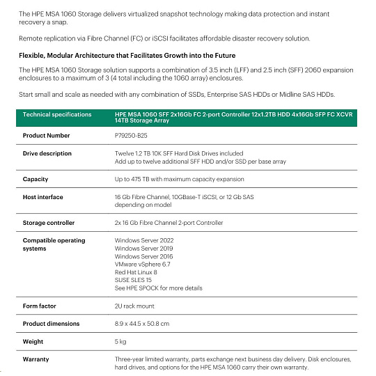 HPE MSA 1060 SFF 2x16Gb FC 2p Array.