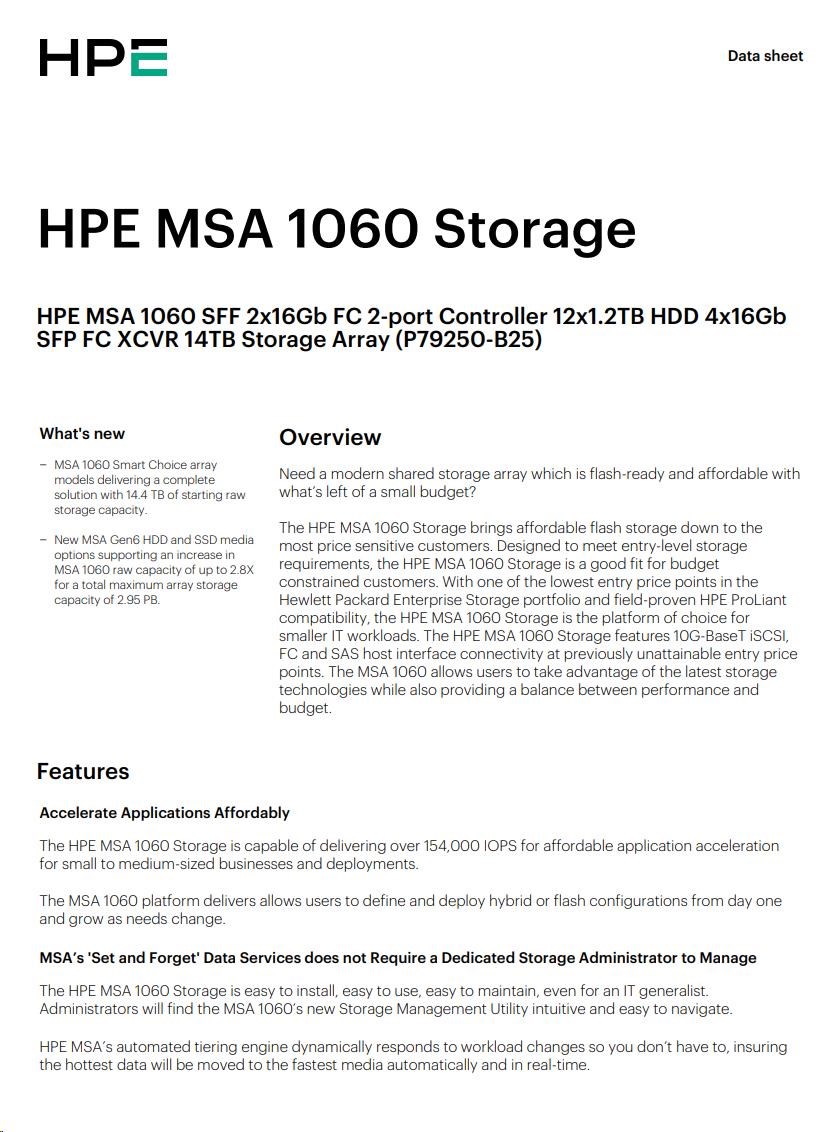 HPE MSA 1060 SFF 2x16Gb FC 2p Array.