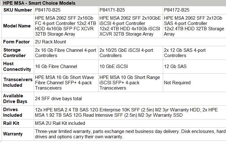 HPE MSA 2062 SFF 2x12Gb SAS 4-port Controller 12x2.4TB HDD 32TB Storage Array Smart Choice.