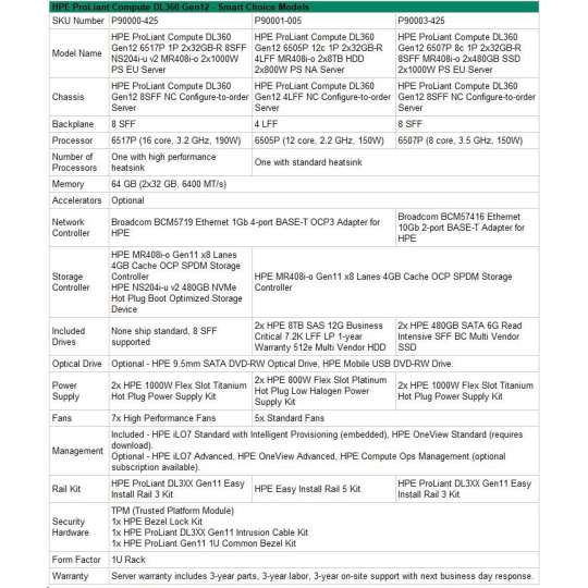 | HPE ProLiant Compute DL360 Gen12 - Smart Choice Models | |