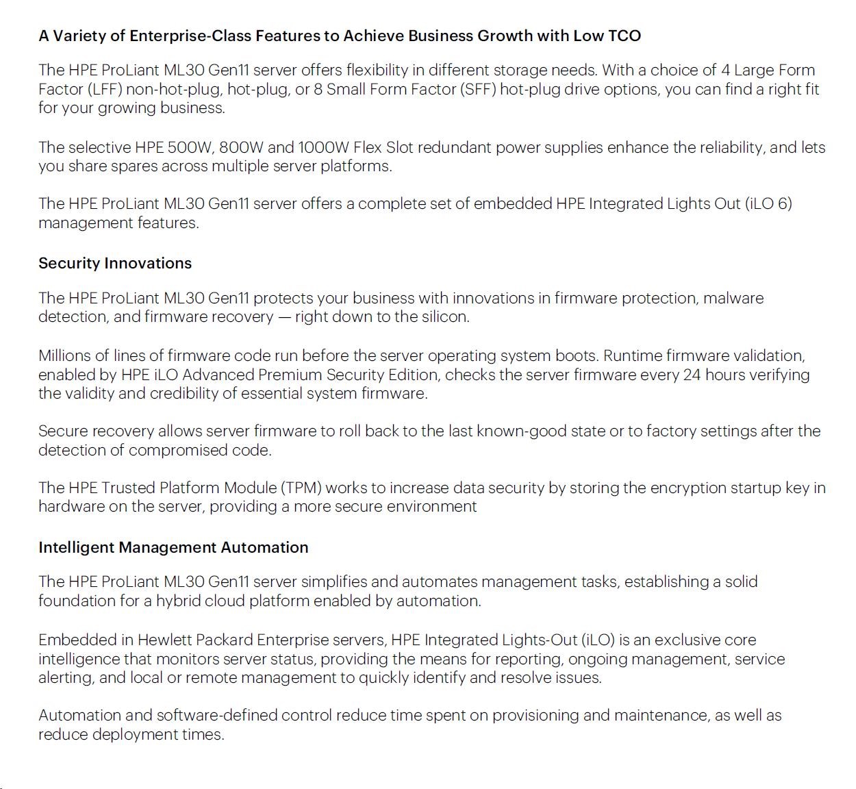 HPE PL ML30g11 6315P (2.8G/4C4T) 1x32G 2x1TB SATA 4LFF-NHP 1x350 VROC 4p1G NBD311 Smart Choice.