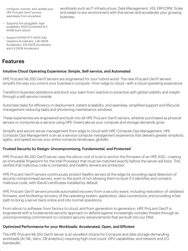 Optical Drive None ship as standard Notes: HPE ProLiant ML350 Gen11 Optical Disk Drive Cable Kit (P56608-B21) is required for optical drive.