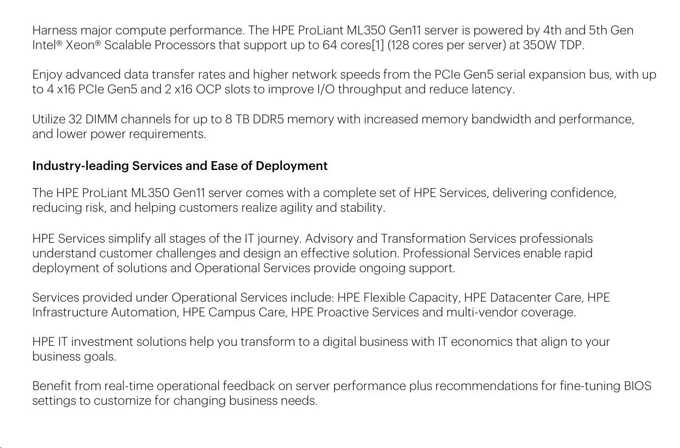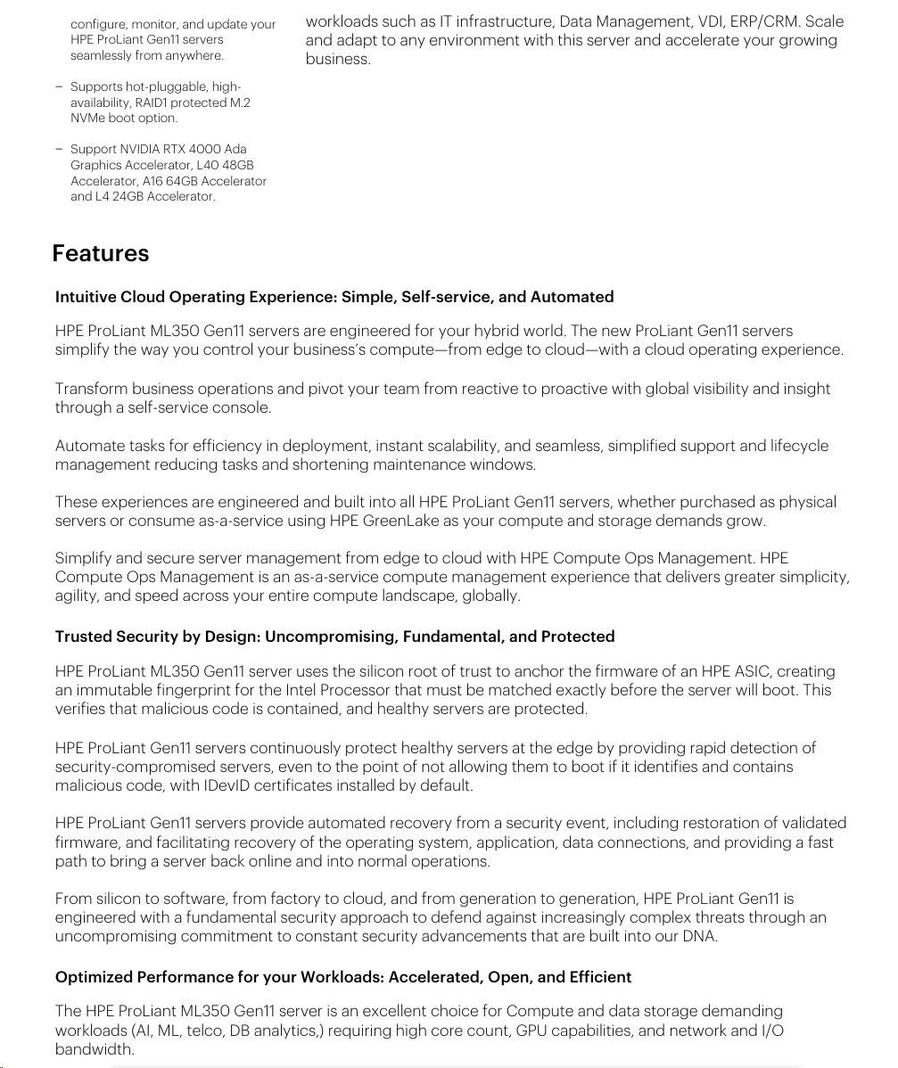 Optical Drive None ship as standard Notes: HPE ProLiant ML350 Gen11 Optical Disk Drive Cable Kit (P56608-B21) is required for optical drive.