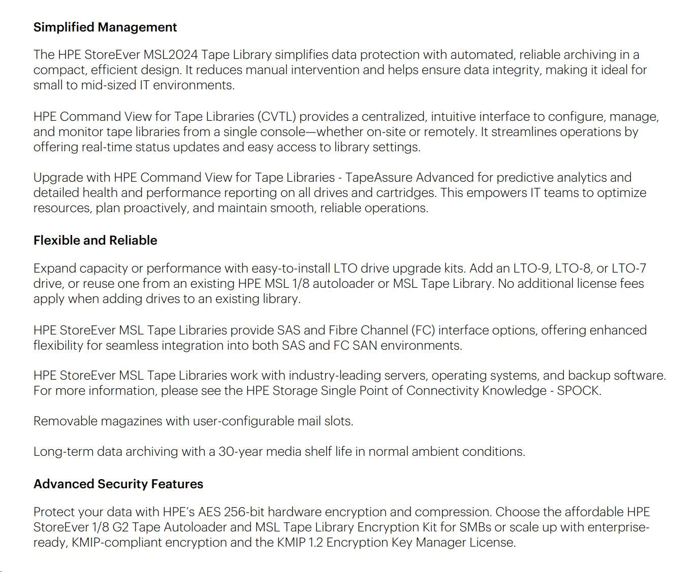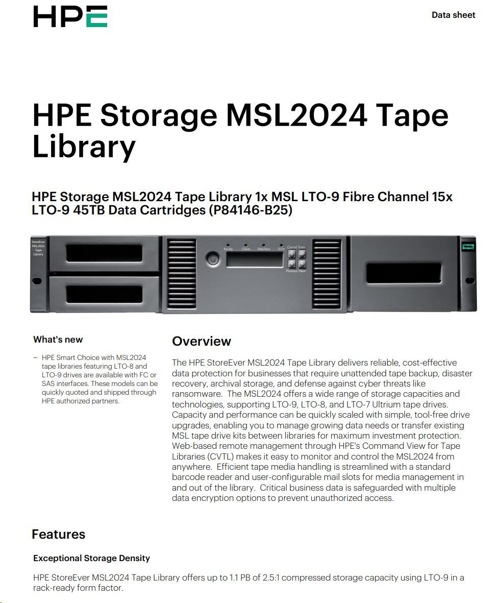 HPE Storage MSL2024 Tape Library 1x MSL LTO-9 Fibre Channel 15x LTO-9 45TB Data Cartridges