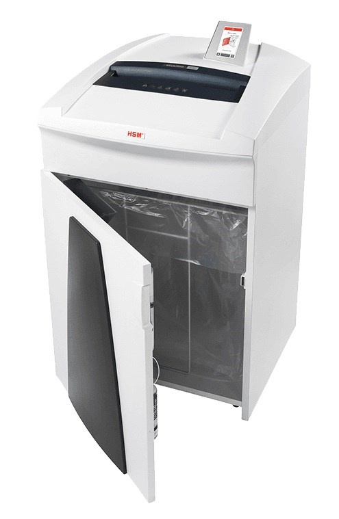 Výkonný profesionální skartovač nové konstrukce určený pro vysokou zátěž. Je vybaven systémem InteligentDrive s ovládáním přes dotykový displej v kombinaci se systémem EMCS, který zajišťuje úsporu elektrické energie při stand-by režimu. Má 3 volitelné režimy chodu: standardní, zvýšený výkon a tichý chod s automatickým přepínáním při zatížení stroje. Displej s českou mutací signalizuje všechny poruchové stavy, lze do něj nastavit kontakt na servis i je vybaven servisním rozhraním s údaji o provozních hodinách a různými nastaveními. Vstup je vybaven bezpečnostním dotykovým spínačem. Masivní ocelové nože poháněné přes převodovku moderním výkonným řízeným motorem mohou skartovat papíry s kancelářskými sponkami i plastové karty a CD/DVD. Tato verze je v příčném řezu. Nože mají systém automatického mazání. Zásobník objemu 145 l je vybaven výsuvným závěsem na plastový pytel. Stroj je mobilní - na kolečkách. Stroj je stejně jako ostatní typy HSM Securio vyroben v Německu. Stroj je vhodný jako skartovač pro zpracování zvláště citlivých osobních údajů dle GDPR, jejichž zneužití by mělo závažný dopad na dotčenou osobu (obor zdravotnictví, pojišťovnictví, advokacie apod.) Skartovací stroj je držitelem certifikátu k životnímu prostředí šetrného výrobku nejvyšší kvality Blue Angel. Záruka na stroj je 60 měsíců, doživotní záruka na nože..