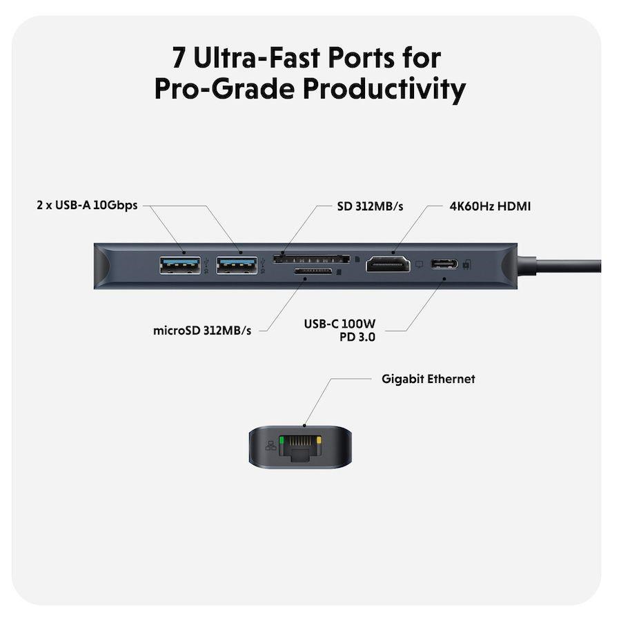 Hyper® EcoSmart™ Gen.2 USB-C 7-in-1 Hub 100W PD Pass-thru