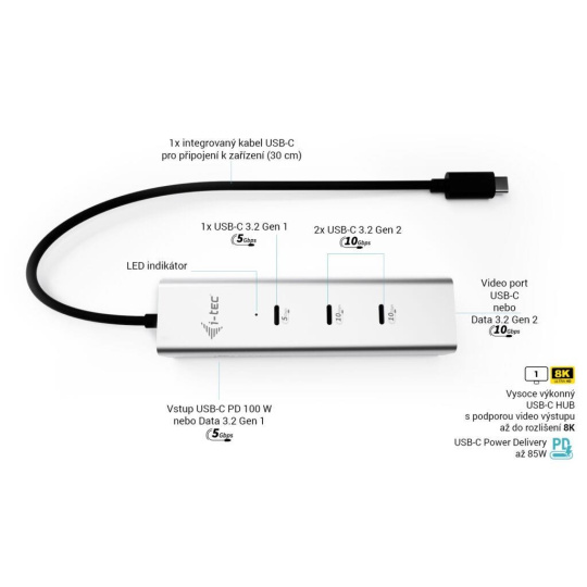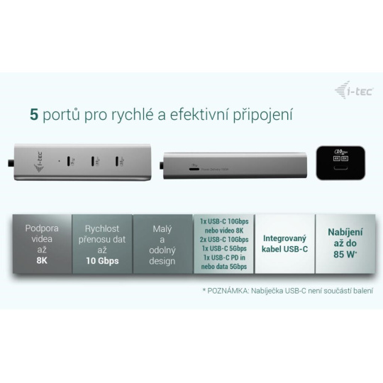 i-tec USB-C Charging Metal HUB 5port with USB-C video 8K, Power Delivery 85W
