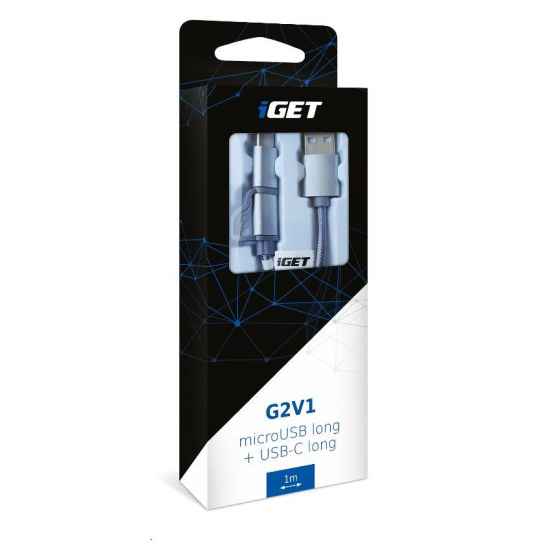 iGET G2V1 USB kabel 2v1, 1m, stříbrný, microUSB i USB-C, prodloužené koncovky