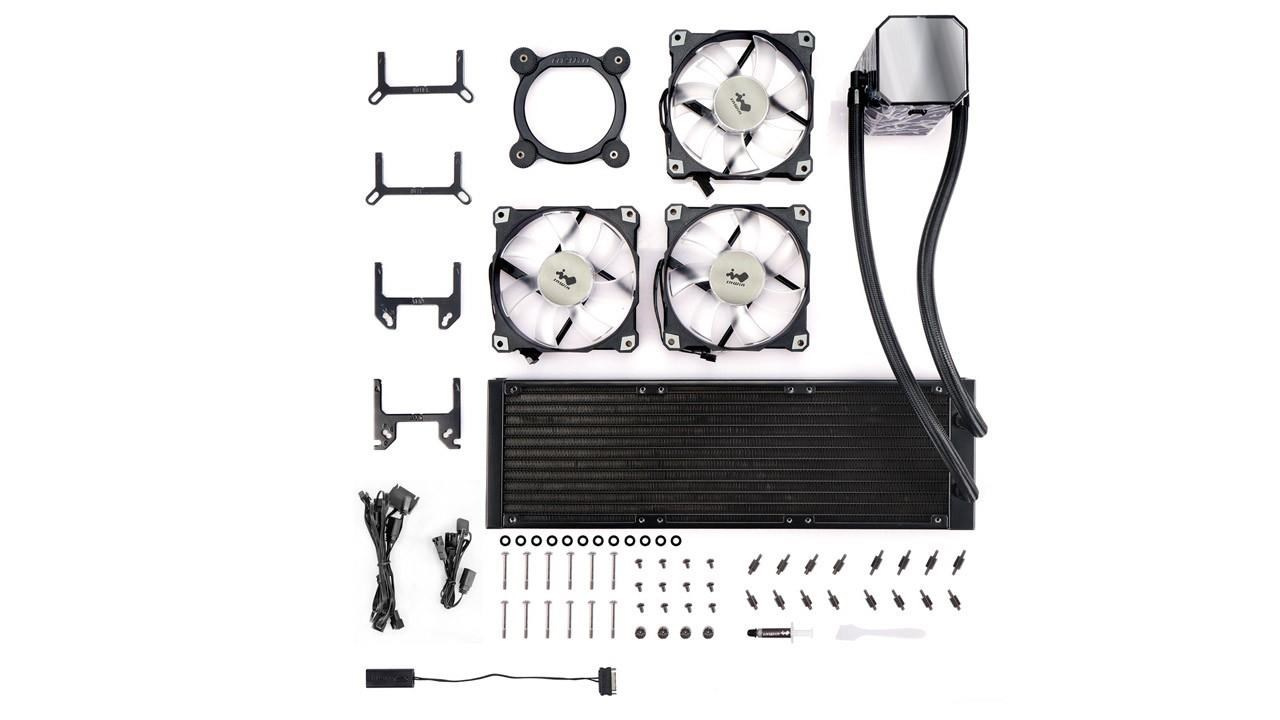 | Package Contents | InWin SR series 360mm CPU Liquid Cooler *1 InWin AJF120 Addressable Fan * 3 ARGB One-Click Controller Fan and Radiator Mounting Screws Pack Mounting Kit for CPU Sockets Cable Pack |